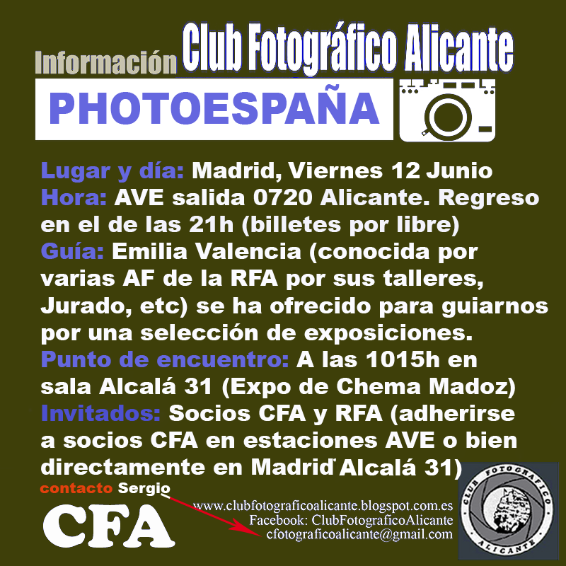 El viernes 5 de Junio, a las 20:00h en El Claustro (C/Labradores, 6, -Alicante-) tendrá lugar la última entrega de fotos de la Liguilla de este año, donde se presentarán Colecciones/Proyectos de 3-5 fotos.